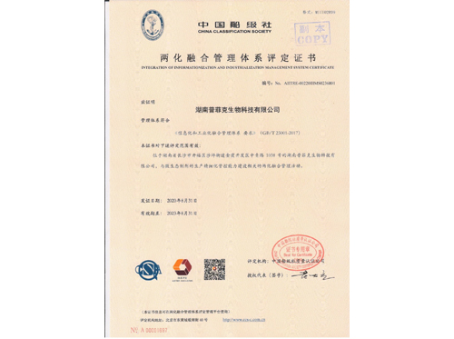 公司榮獲《兩化融合管理體系評定證書》